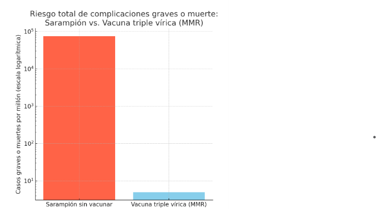 Ha sido administrada a cientos de millones de personas, y los efectos secundarios graves son excepcionales y muy inferiores a los derivados de la propia infección natural. En cambio, la tasa de mortalidad del sarampión alcanza los 2 fallecimientos por cada 1.000 casos, aunque en países con menor acceso sanitario la cifra puede ser diez veces mayor. En 2023 se registraron más de 100.000 muertes por sarampión en el mundo, la mayoría en niños menores de cinco años no vacunados o sin la pauta completa, según la Organización Mundial de la Salud (OMS). El organismo ha alertado de que la caída global en las tasas de vacunación infantil, interrumpida durante la pandemia, está provocando el regreso de enfermedades que ya se daban por controladas.