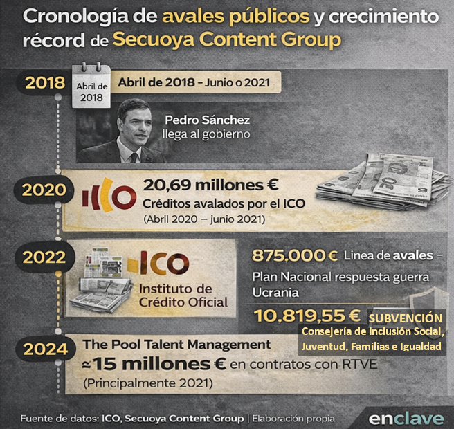Mientras el debate público se centraba en el contenido del documental sobre Pedro Sánchez, otro elemento quedaba en segundo plano: la estructura financiera de la productora que lo realizó. A la vista de los datos disponibles, resulta pertinente analizar la cronología de las ayudas económicas públicas recibidas por el grupo Secuoya.
