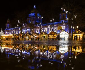 Se inauguró el pasado día 15 y podrá visitarse hasta el 22 de diciembre. Hablamos del mercadillo navideño de Belfast, el más grande de la Isla Esmeralda, instalado en los jardines del Ayuntamiento, uno de los edificios más emblemáticos de la capital norirlandesa y, también, uno de los más bonitos de la isla. Más de 100 comerciantes internacionales y locales ofrecen sus productos y artículos artesanales entre salchichas Bratwurst, chocolates italianos, quesos de todo el mundo y Glühwein, el tradicional vino caliente, creando una atmósfera muy navideña.